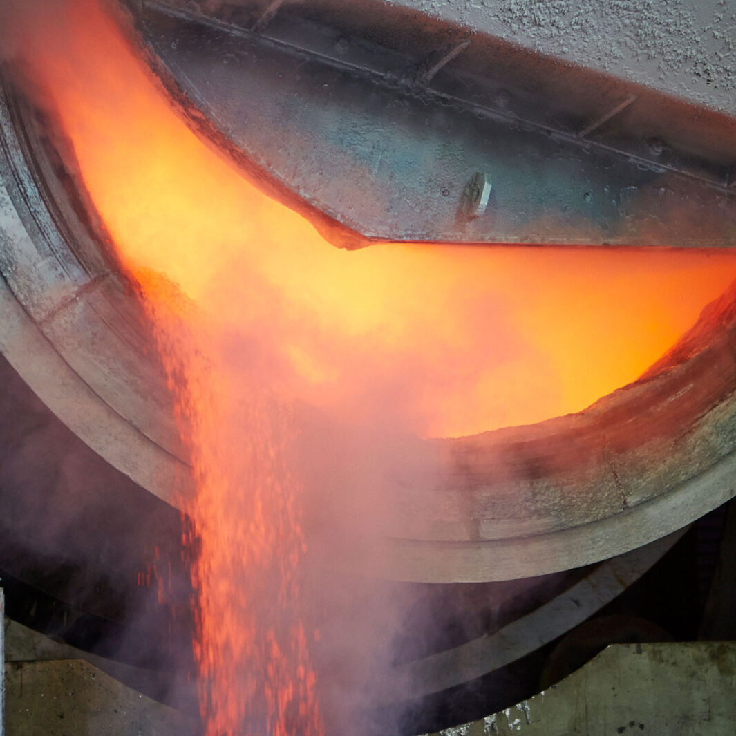 For the lower grade drosses which contain small amounts of free Aluminium we generally process this through our bespoke dross mill to separate any residual aluminium from the aluminium oxides. It’s a process that improves the recovery of aluminium in tilt furnaces and means we can turn all grades of dross into a variety of end products. For drosses that contain a higher percentage of aluminium we will process these directly in our tilt rotary furnace (TRF).